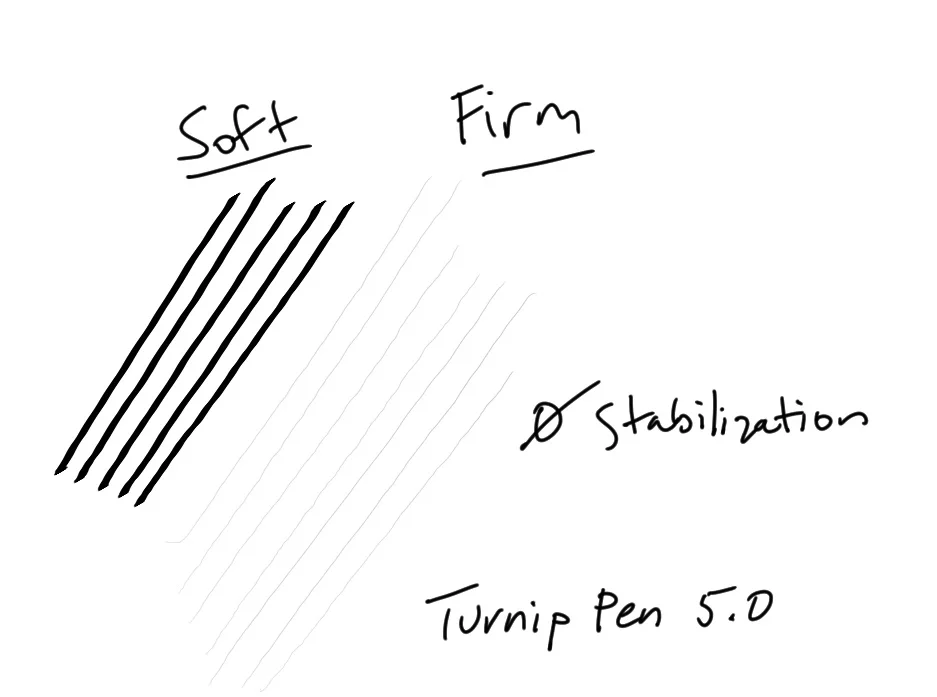 Initial activation force is very low with tip set to firm, but I had a difficult time achieving medium pressure. This may be due to the nib on my pen being so short (see image below).