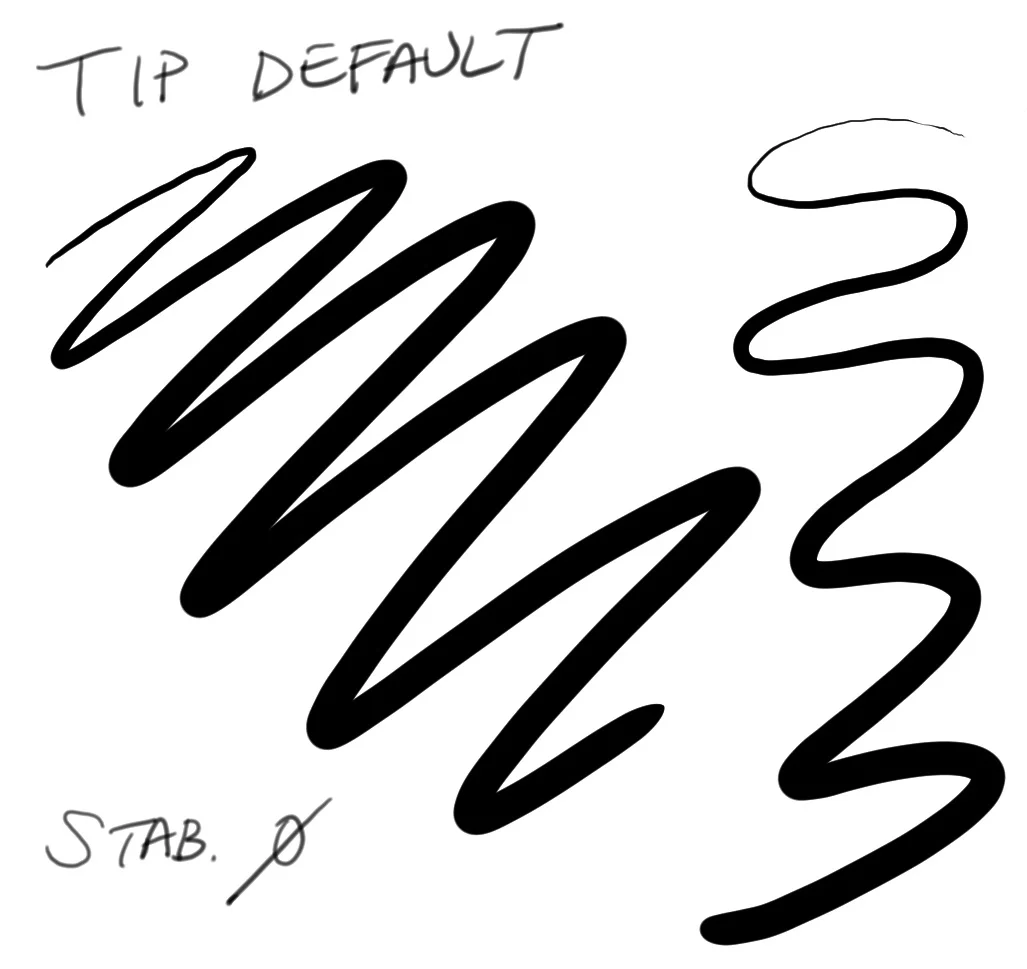 With stabilization set to zero, the jitter showed up with lightest pressure and tip sensitivity set to the default.